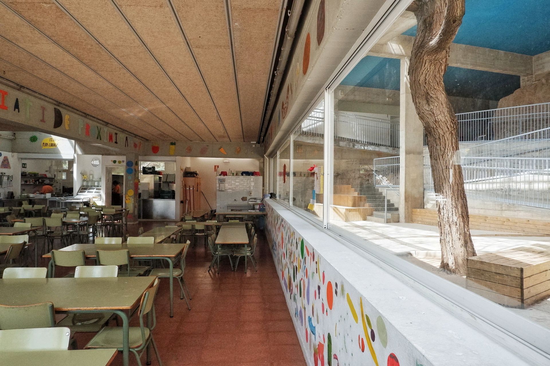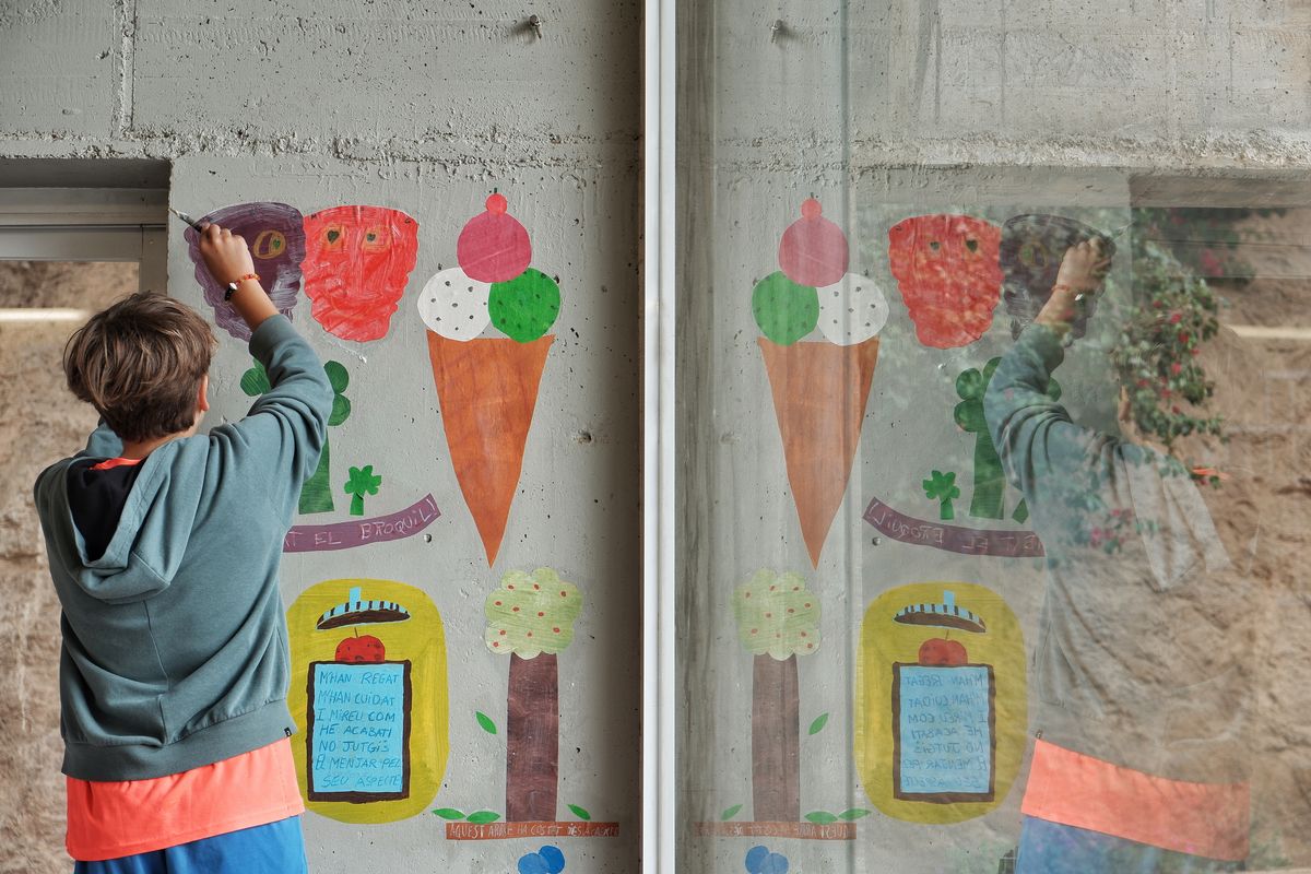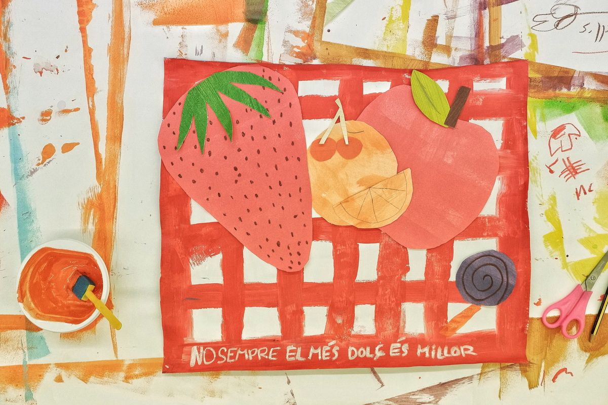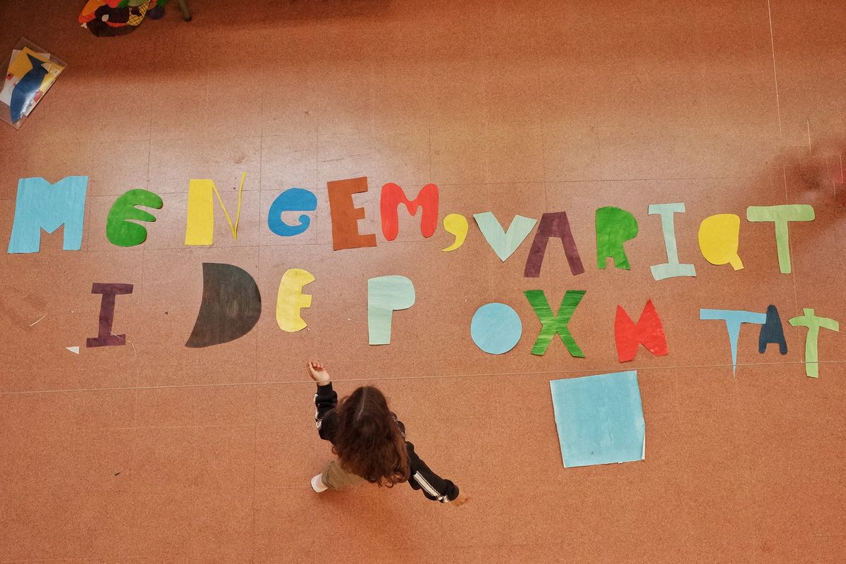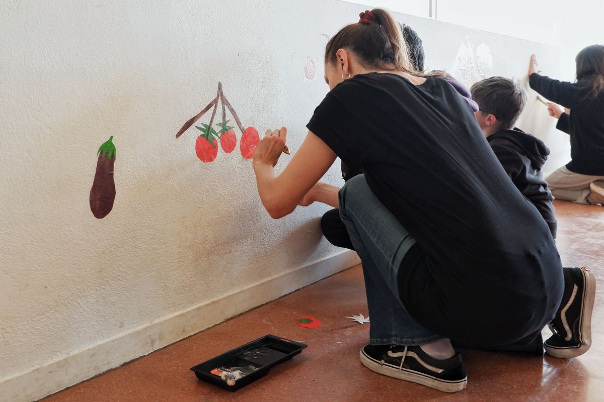 Aquesta primera impressió del lloc no la transmetia únicament l’espai, sinó també qui l’habita i el fa funcionar. El dia a dia de l’escola es nodria de gestos i iniciatives orientades a reforçar valors compartits i tenir cura del seu entorn. Entre elles va sorgir la proposta de l’Eva, la cuinera, de decorar el menjador amb un lema que convidés a reflexionar sobre el malbaratament alimentari.