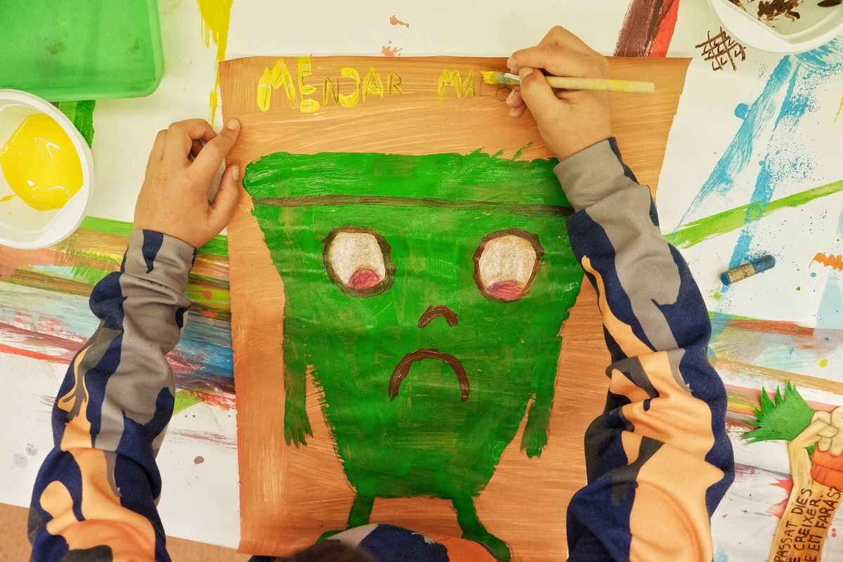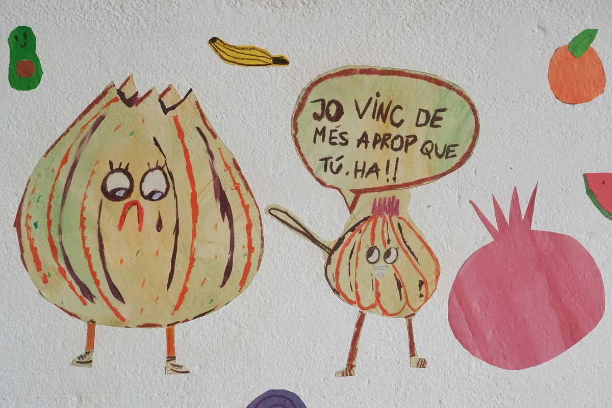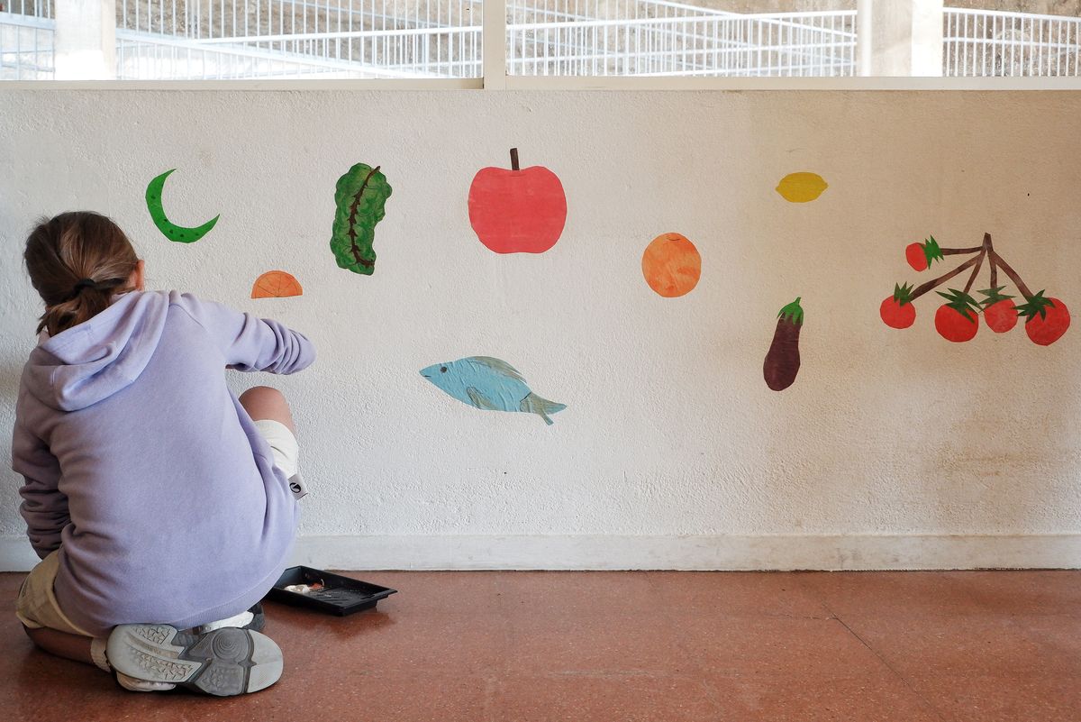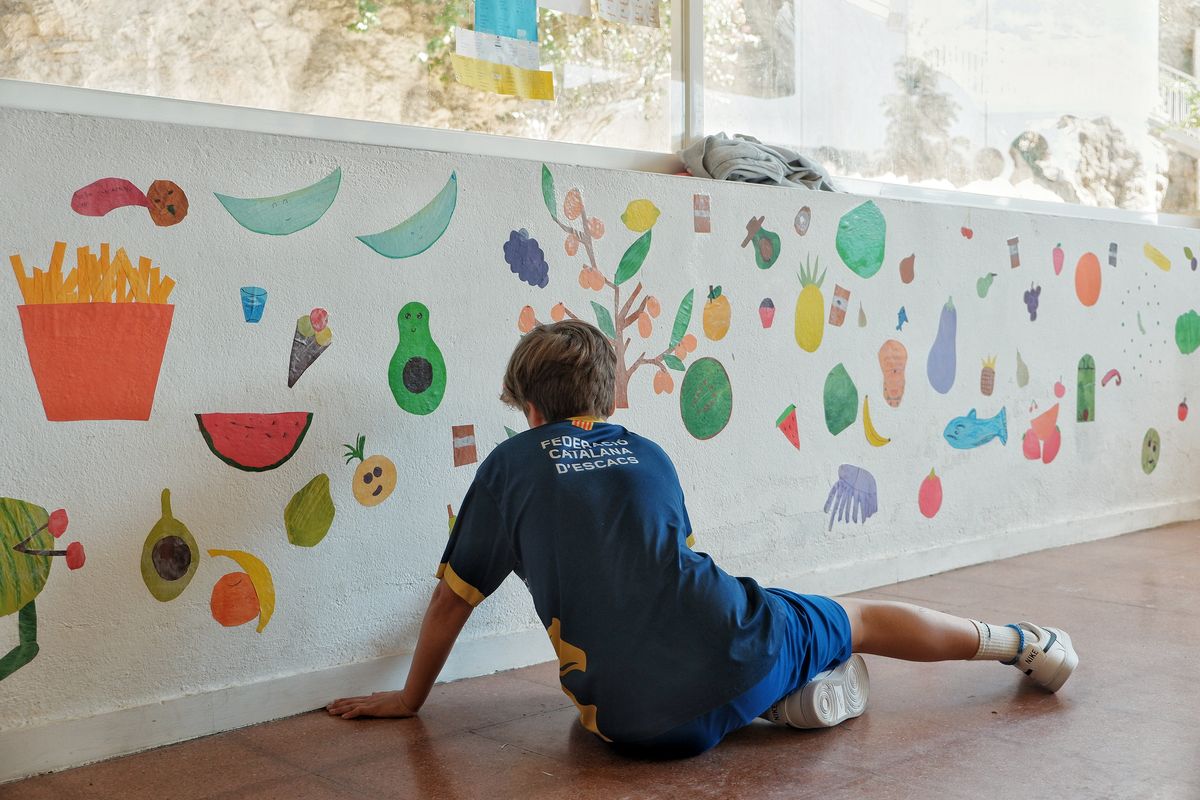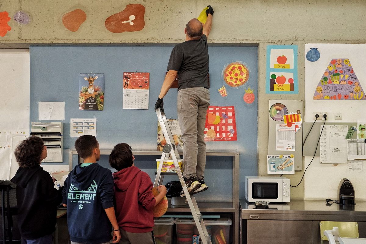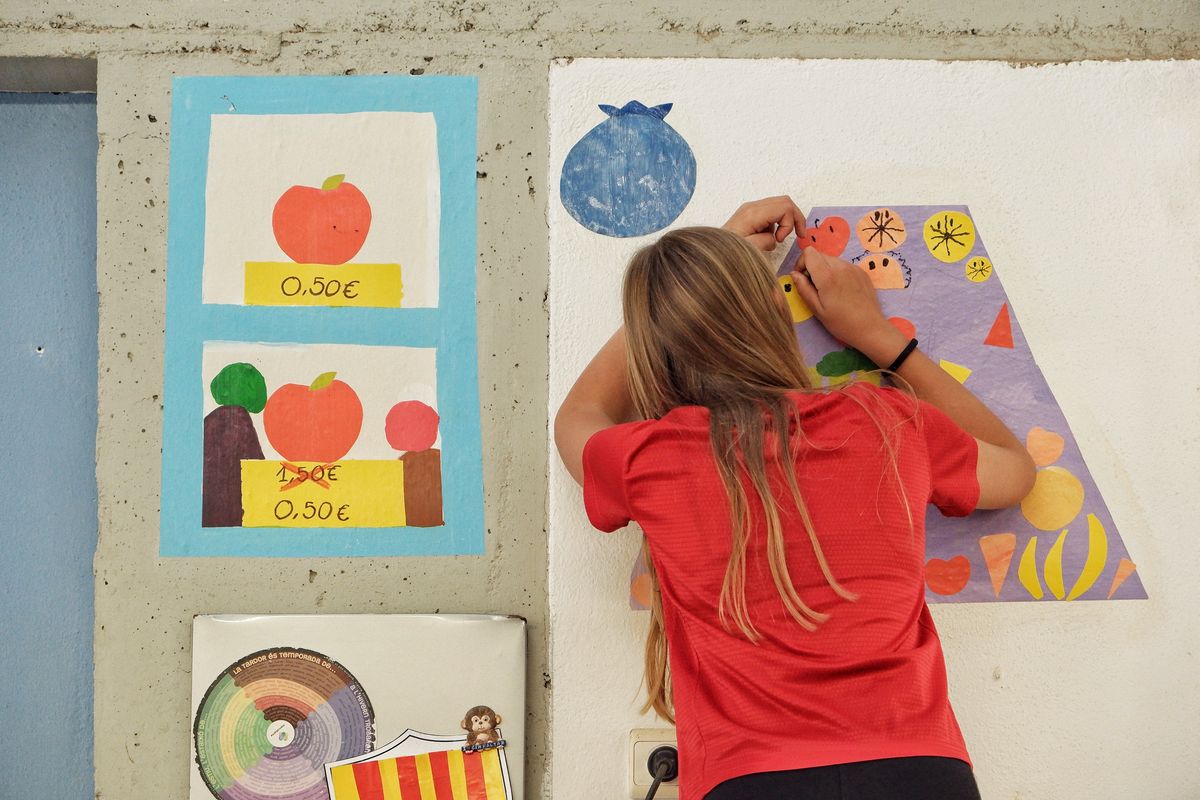 Aquesta primera impressió del lloc no la transmetia únicament l’espai, sinó també qui l’habita i el fa funcionar. El dia a dia de l’escola es nodria de gestos i iniciatives orientades a reforçar valors compartits i tenir cura del seu entorn. Entre elles va sorgir la proposta de l’Eva, la cuinera, de decorar el menjador amb un lema que convidés a reflexionar sobre el malbaratament alimentari.