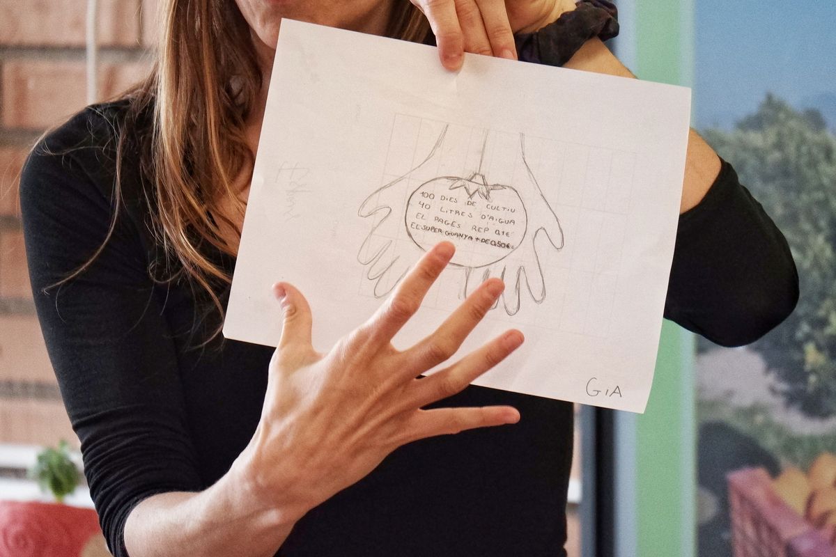 Aquesta xerrada va donar peu a un debat molt enriquidor sobre les reivindicacions i problemàtiques que afecten l’entorn més proper, com la turistificació i la gentrificació del barri de la Salut, a causa de la proximitat del Park Güell, que rep prop de 4,5 milions de visites anuals. A partir d’aquí, la conversa es va encaminar cap a com aquestes dinàmiques també repercuteixen en l’alimentació. Es va parlar del malbaratament alimentari, de les condicions laborals dels agricultors locals i de la importància de consumir productes de proximitat. Des d’aquestes reflexions, els alumnes van crear els seus propis missatges i van demostrar una gran capacitat de sintetitzar conceptes de manera gràfica i escrita.