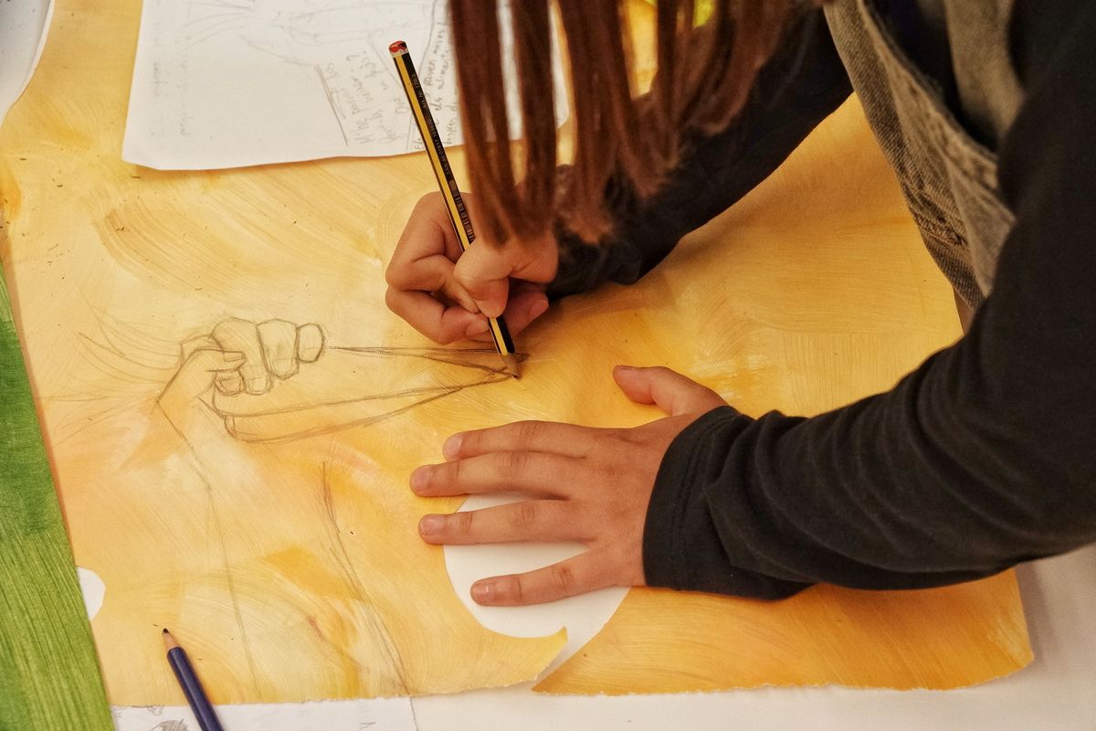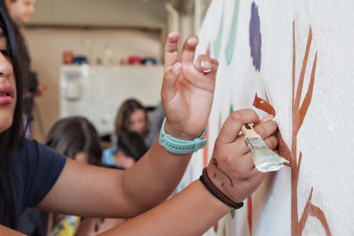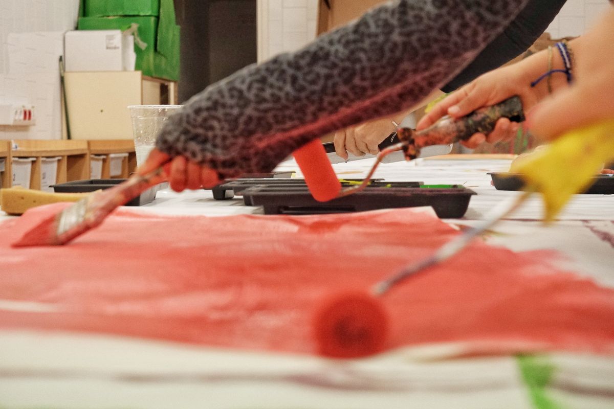 Durant tota una setmana, les tres classes de 5è i 6è de primària van treballar conjuntament en aquesta intervenció. La primera sessió va ser una introducció teòrica a l’art urbà, on es van abordar les protestes estudiantils del Maig del 68 a París i la seva influència en altres països europeus. Es va explicar com d’aquestes protestes van sorgir els cartells i pancartes que van inspirar el moviment punk als anys setanta, i de quina manera aquesta estètica de protesta i la cultura visual del punk van influir en l’auge del grafit i la cultura hip hop als anys vuitanta, fins a arribar al naixement de l’art urbà a Barcelona a principis dels 2000 com a forma d’expressió i rebel·lia.