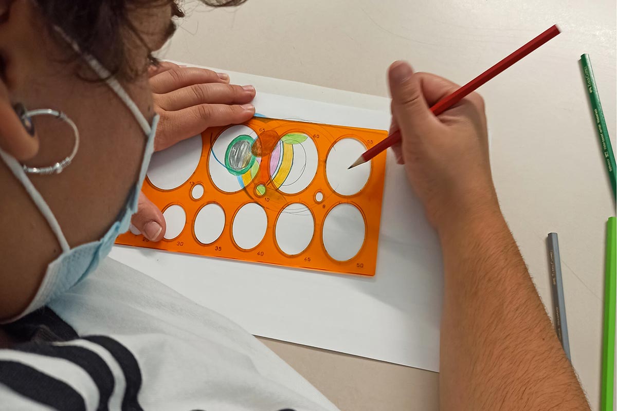 Taller realitzat per al centre d’atenció a la salut mental Centre de dia Bétula i Badalona Serveis Assistencials. Els usuaris van aprendre a expressar-se mitjançant la geometria i a utilitzar els colors per a transmetre emocions i sensacions que rebem del nostre entorn.