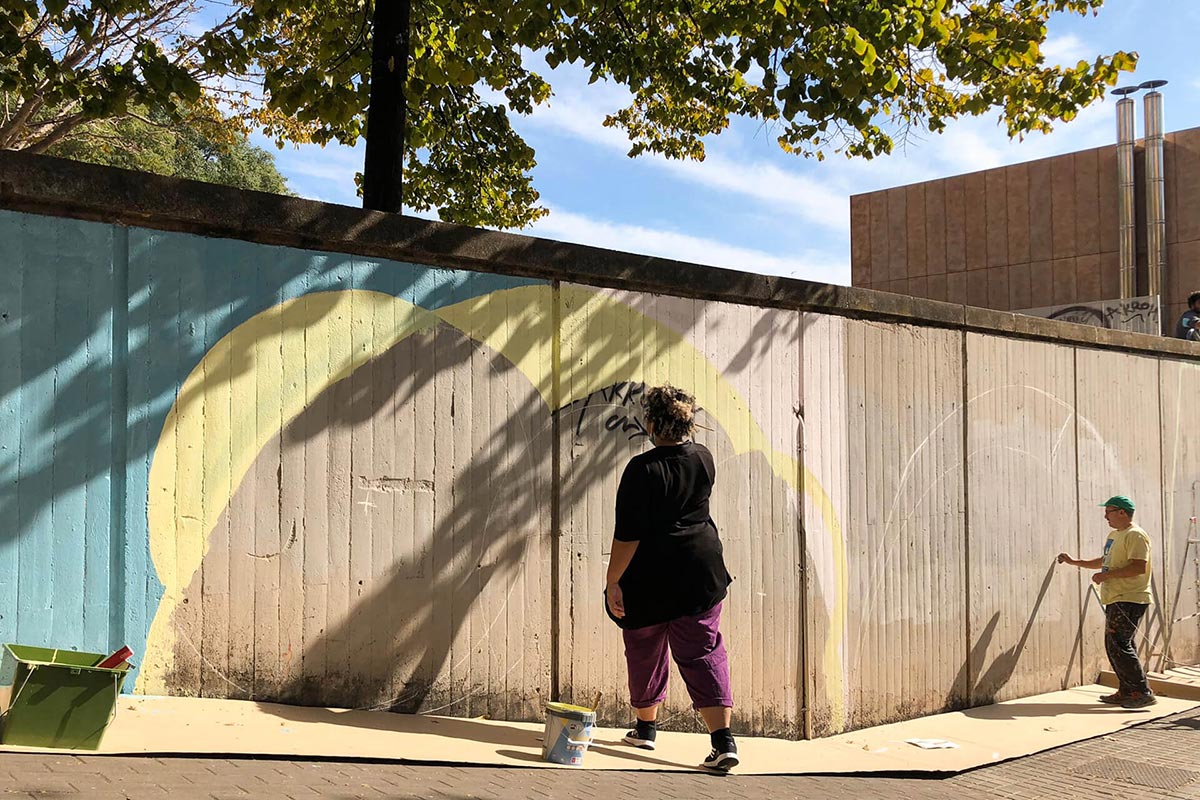 Durant les dues jornades de pintura mural al carrer vam comprendre la importància de treballar en equip, traslladant l’esbós a una paret exterior mitjançant l’ús d’una àmplia gamma d’eines i pintant amb diferents materials per a acabar el mural.