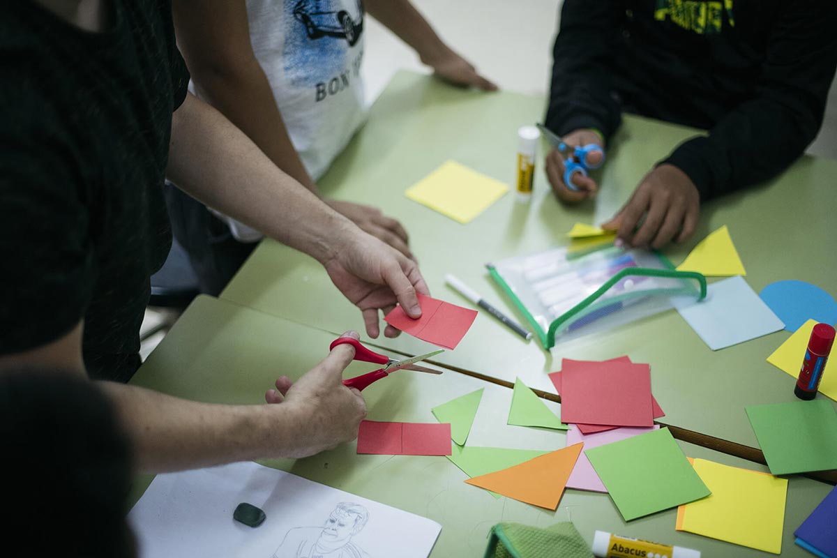 Taller realitzat en l’Institut Joaquim Rubió i Ors de l’Hospitalet de Llobregat per als alumnes de 1r de l’ESO, coordinat per la Fundació Contorno Urbano.