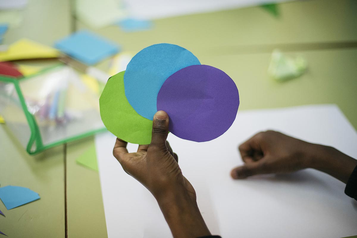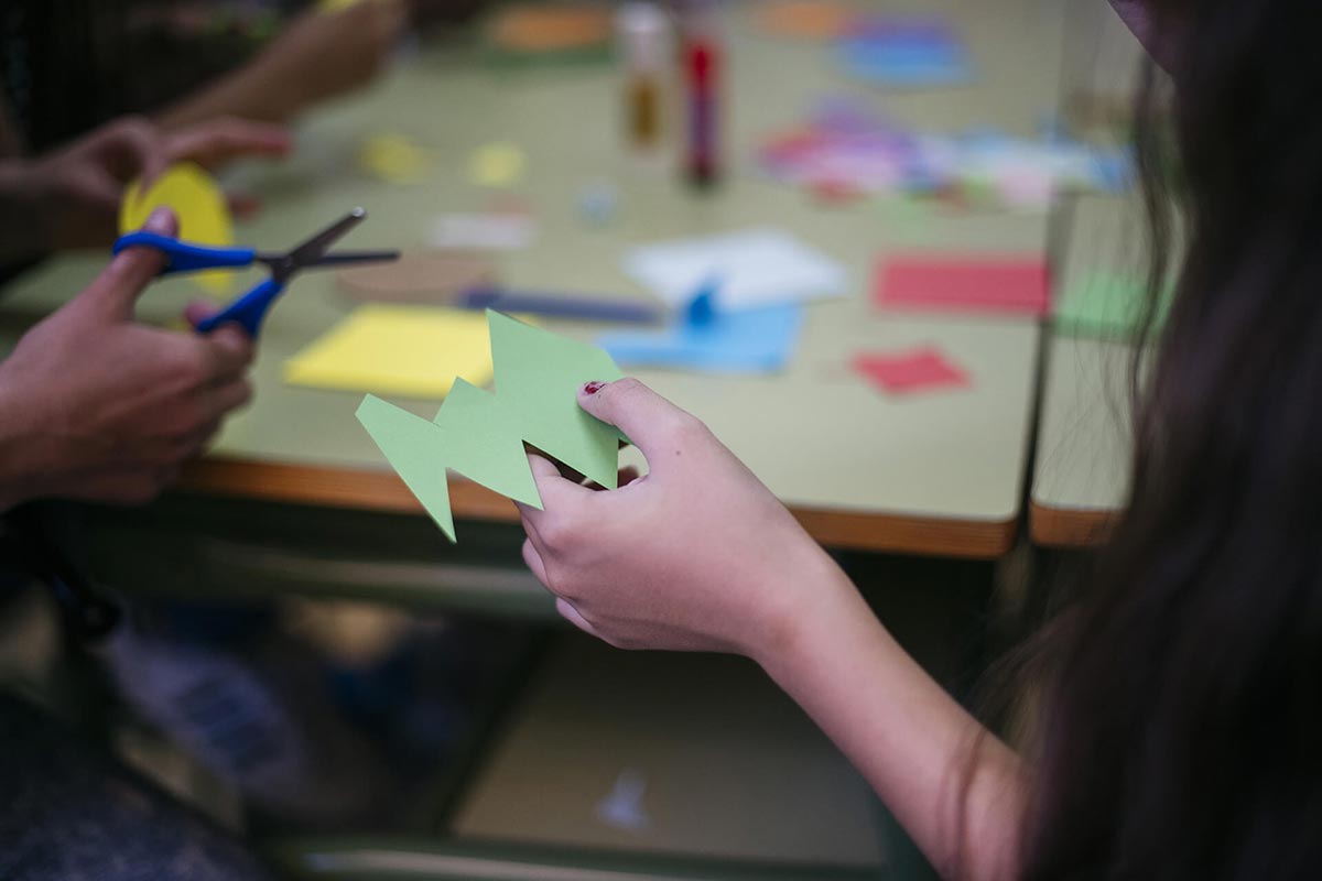 Es va treballar la teoria i psicologia del color que va servir per a elaborar diferents imatges mitjançant la tècnica del collage. Cada grup d’alumnes va treballar les seves composicions geomètriques reflexionant sobre el seu significat i trobant l’equilibri de les formes i els colors.
