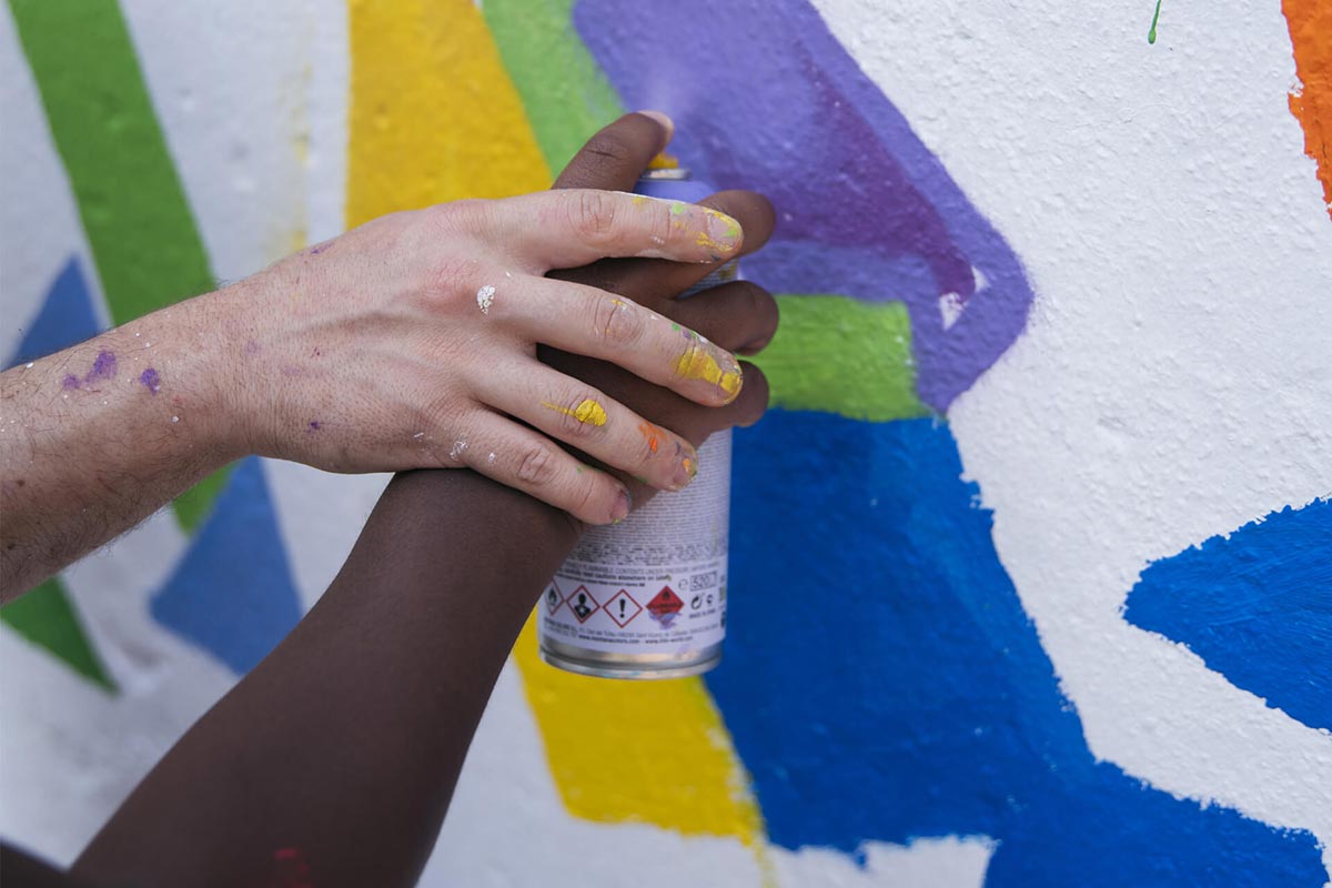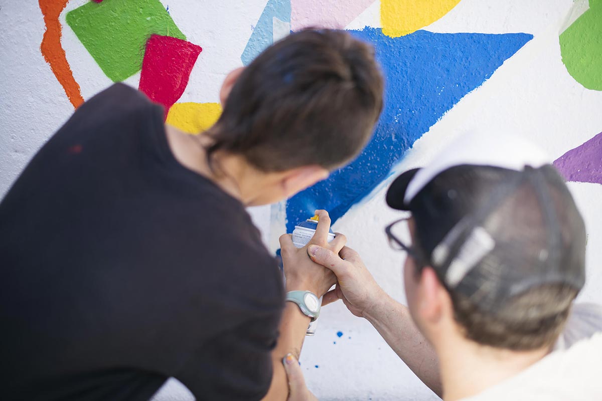 En els tallers de Pintamos Mucho fomentem el treball en equip, la integració i la gestió de les emocions a través de l’art. I és que quan una classe de 1r d’ESO es “enfronta” a un mur és de summa importància treballar de manera cooperativa.